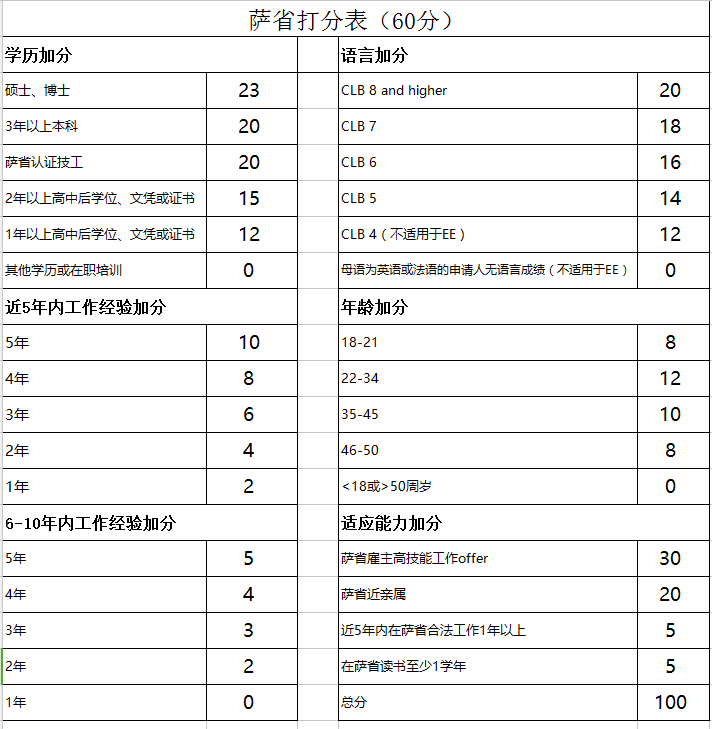 薩斯克徹溫省有自己的緊缺職業(yè)列表, 也有自己的一套打分系統(tǒng),即使沒有雅思4個6分, 滿足了60分的打分要求, 同樣也是可以申請加拿大技術移民的!