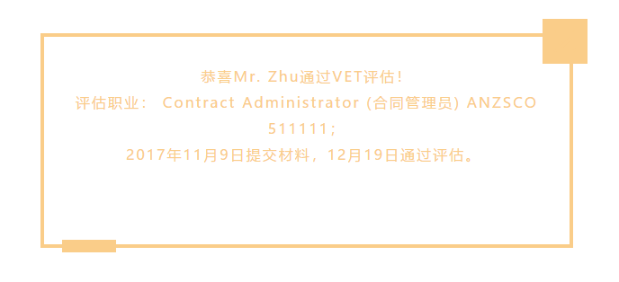 這個(gè)職業(yè)是屬于VET評(píng)估機(jī)構(gòu)的,客戶的學(xué)歷是本科,英語(yǔ)專業(yè),而這個(gè)合同管理員是屬于VET C類的職業(yè), 大專以上就可以申請(qǐng),專業(yè)不是高度相關(guān)的,只需要有近五年中的2年的工作經(jīng)驗(yàn)就可以。