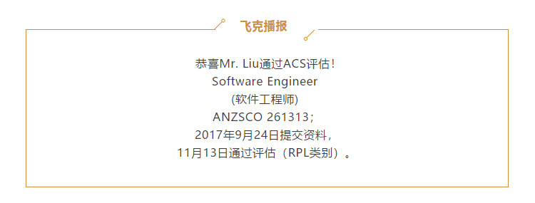 這位客戶聽從了我們的建議,選擇了第三種評估方案,選擇了RPL類別的評估方式。最終成功通過ACS職業(yè)評估,并且獲得了預(yù)期的8年有效加分工作年限。