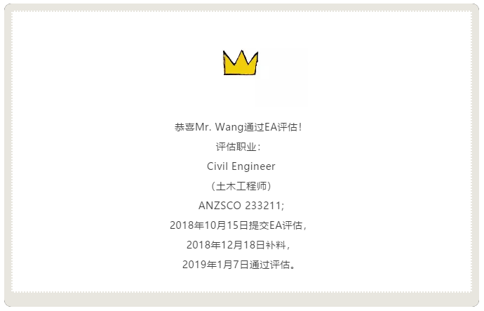 做過EA評估的朋友都知道,EA評估主要認可的是大學本科學歷與文憑。這位客戶與我們飛克合作已經有一段時間了,在收到職業評估通過信的第一時間就通知我們,并向我們表達了他的感謝。在此,小編也再次祝賀Mr. Wang,希望你后面也進展順利。下面我們一起來看看文案和顧問的分析吧!