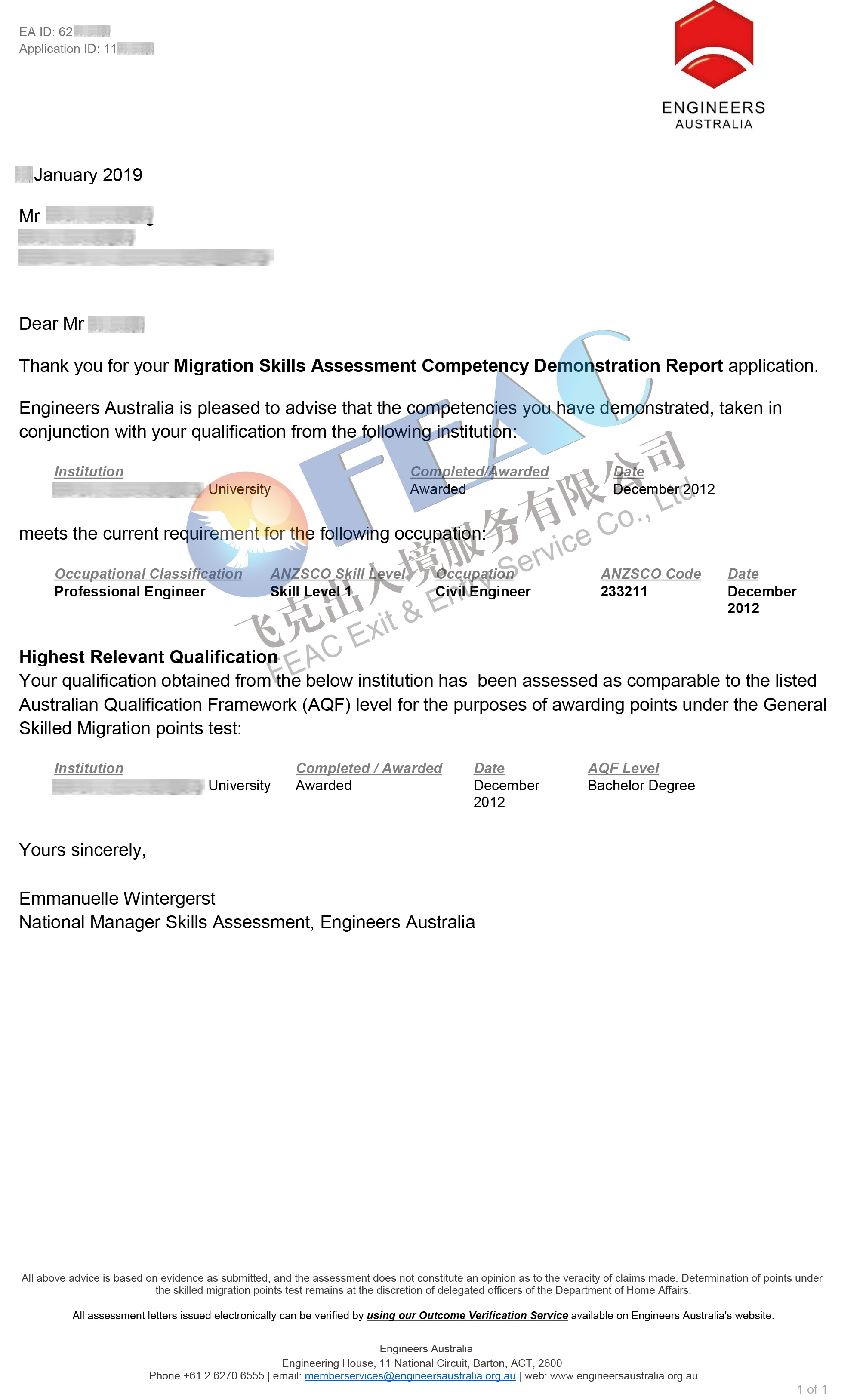 Mr. Wang國外念的本科,專業是civil engineering,雖然學的是土木相關的專業,但工科課程有限,而且畢業證顯示是理學專業。通常來說,EA對學歷要求很嚴格,申請具有一定難度!因此,在CDR的寫作方面具體細節一定要把握好。