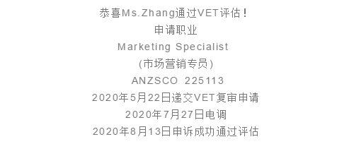 Hello,大家好!我們這一期要分享的案例是來自香港Ms.Zhang的VET職業評估被拒,最后飛克幫其逆風翻盤的故事,下面我們一起來看看吧!