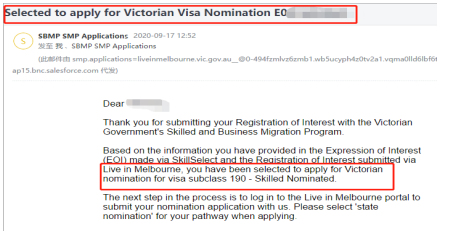 2020年9月29日正式獲得維州190州擔保同時EOI獲邀。