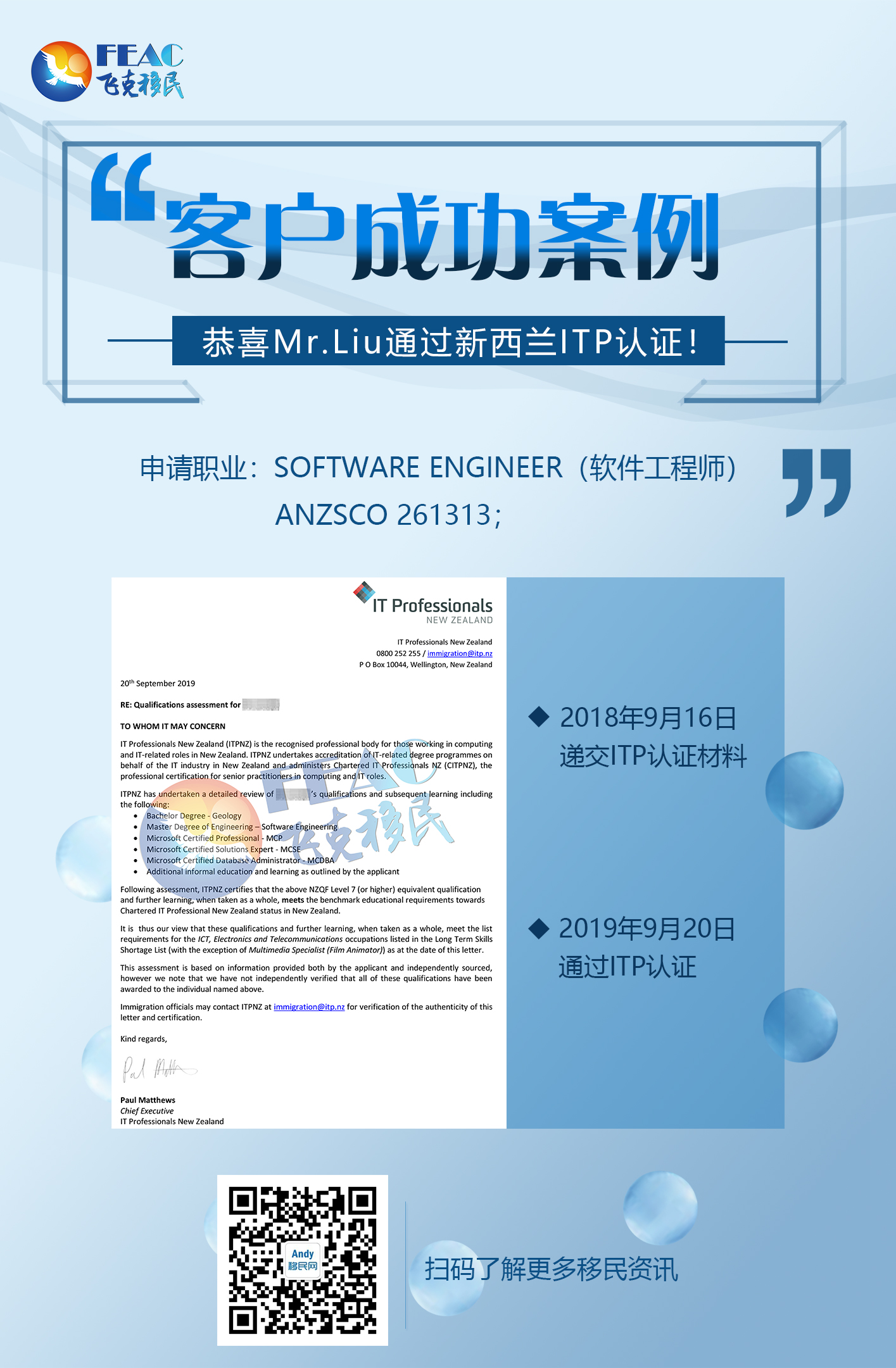 9月20日:恭喜Mr.Liu通過新西蘭ITP認證(軟件工程師)!