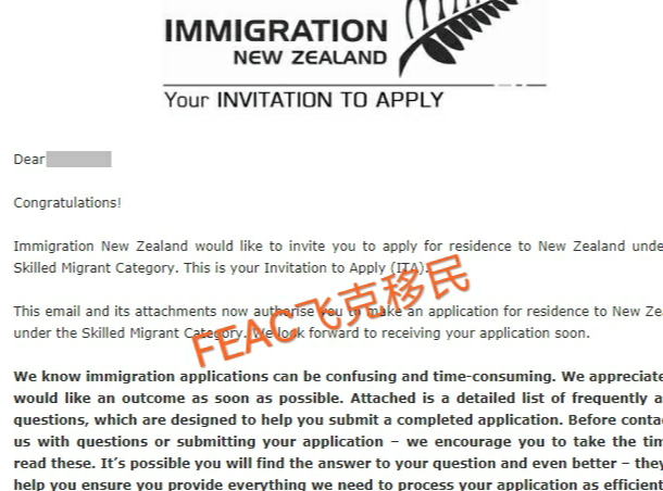 恭喜Mr.Feng新西蘭技術移民獲邀!