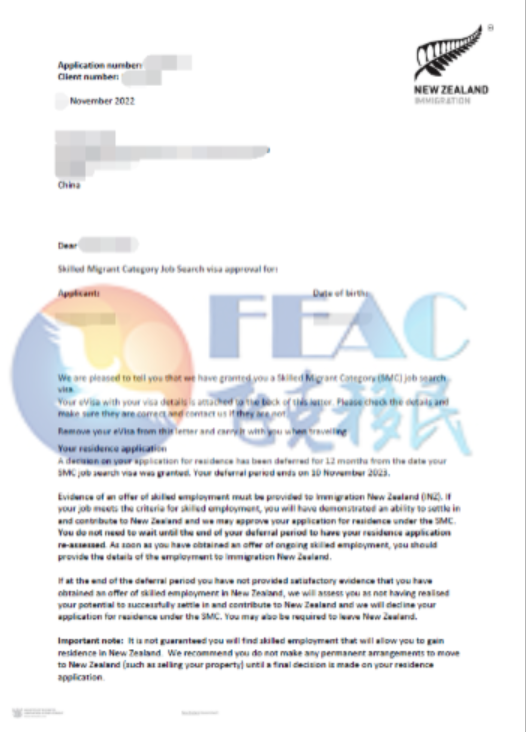 11月9日:恭喜Mr.Lin 順利通過新西蘭的技術移民工作簽證邀請!