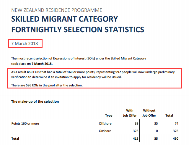 昨日,新西蘭移民局官網(wǎng)公布了2018年3月7日EOI篩選結(jié)果:本輪共有450個(gè)申請(qǐng)人獲邀。
