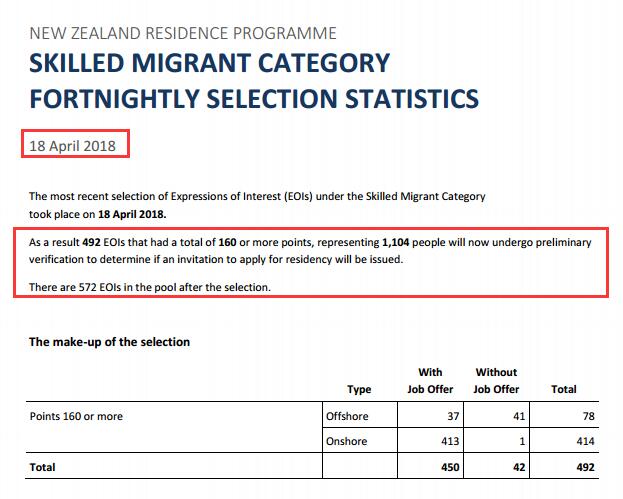 新西蘭技術(shù)移民2018年4月18日EOI篩選結(jié)果:本輪共有492個申請人獲邀。