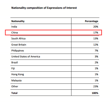 5. 受邀者中持有中國國籍的占17%,比上次增加了5個百分點,在EOI遞交國家中排名第二,可以看出中國仍然是新西蘭技術(shù)移民申請的主要來源國!
