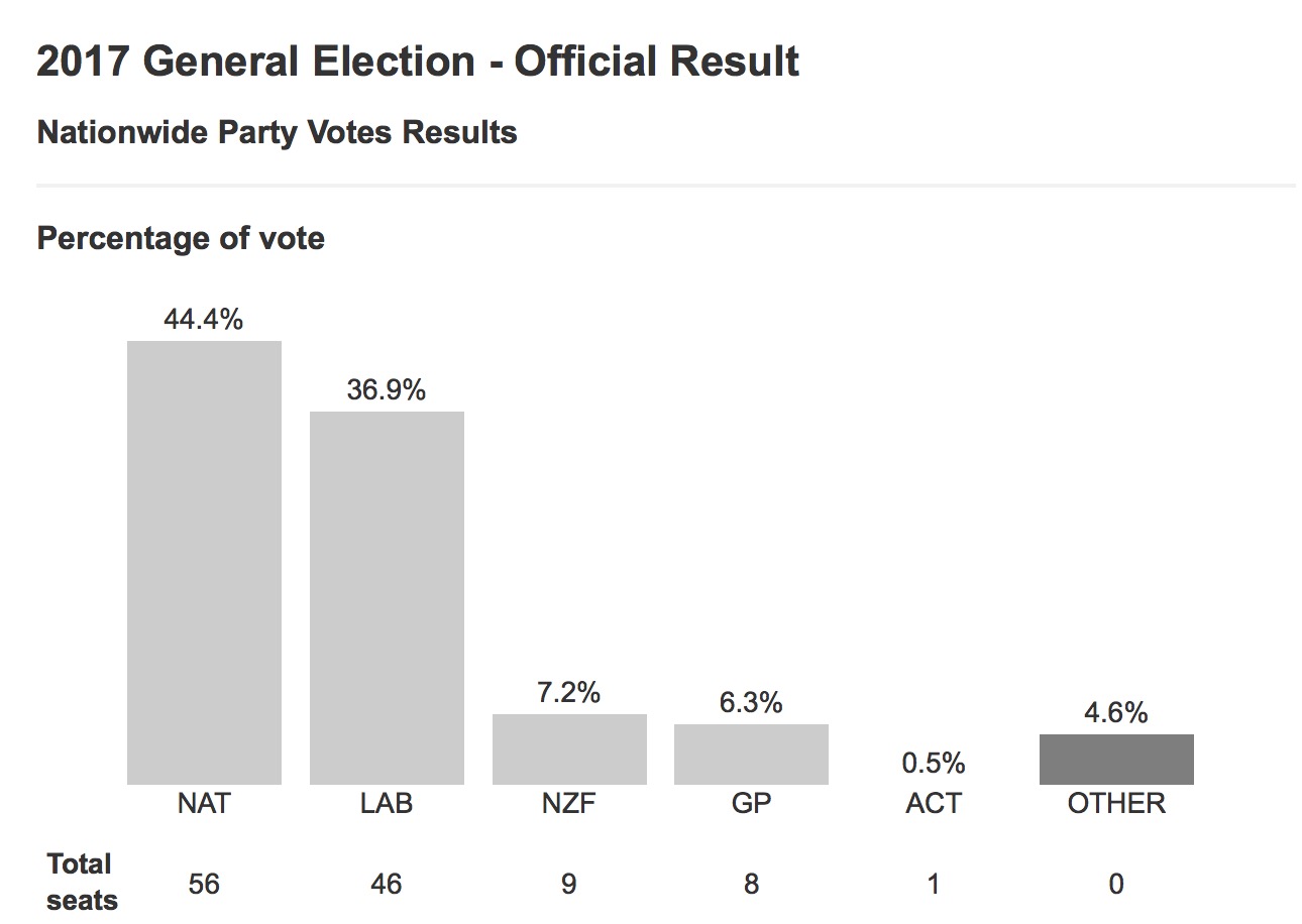 剛剛出爐的結果顯示,國家黨喪失了2個席位,工黨和綠黨各增加了1個席位。