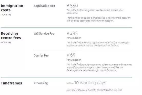 1. 不同的申請地和處理機構有不同的費用標準,請大家登錄新西蘭移民局網站查詢。