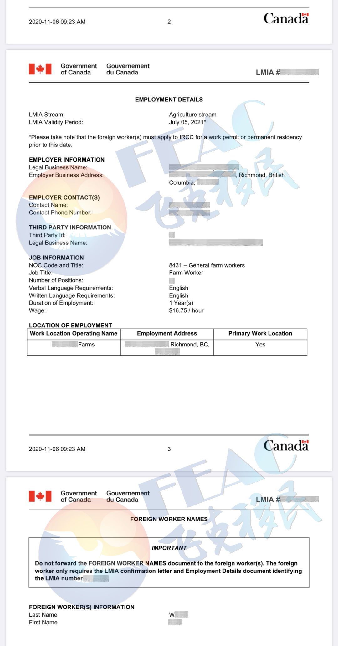 恭喜W先生成功獲批加拿大農業食品移民試點項目(AFIP)記名LMIA!