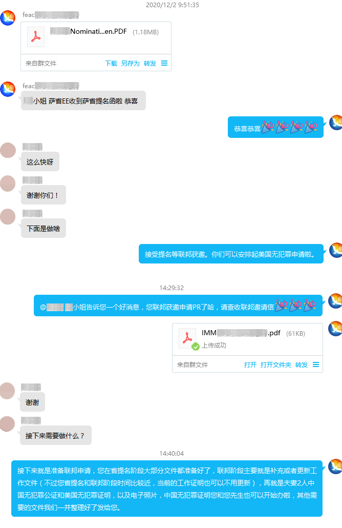 2020年9月16日遞交薩省EOI,2020年10月7日 EOI獲邀,2020年10月30日遞交薩省省提名,2020年11月27日獲批薩省提名書,2020年12月2日接受省提名并額外加600分,2020年12月9日獲得聯邦EE邀請(CRS 打分:951分)。