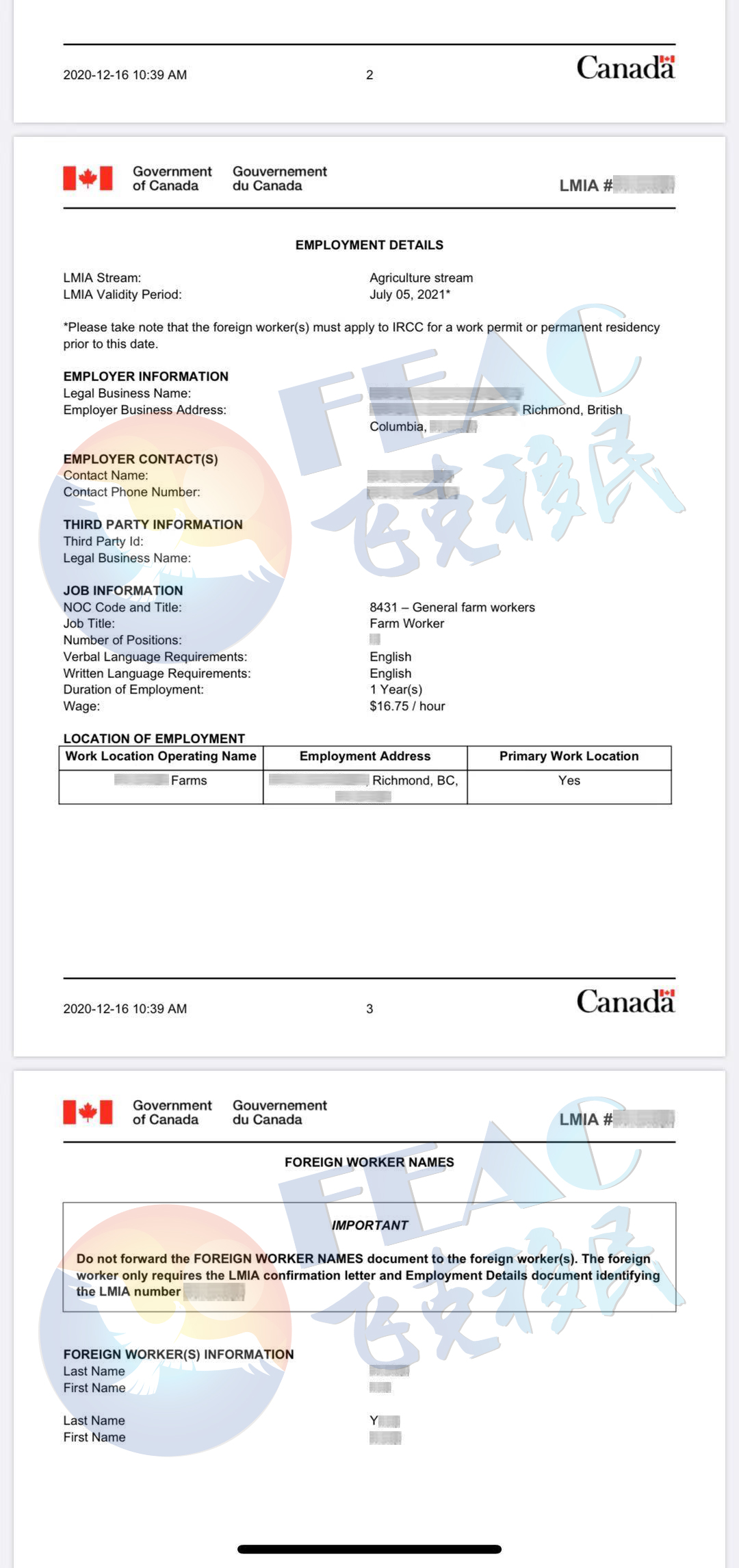 恭喜Y先生成功獲批加拿大農業食品移民試點項目(AFIP)記名LMIA!