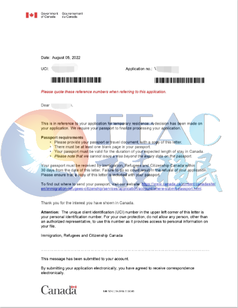 8月5日:恭喜Ms.?Wang加拿大旅游簽證獲批!