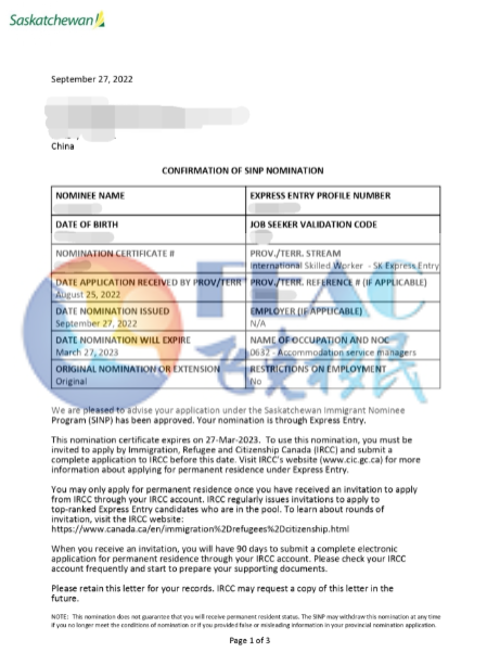 2021年2月第一次遞交聯邦EE入池和薩省EOI,因未被抽中而過期,2022年2月24日第二次聯邦入池,2022年2月24日第二次遞交薩省EOI(EOI打分:69),2022年7月21日薩省EOI獲邀遞交全套省提名申請,2022年8月25日遞交全套薩省EE省提名申請文件,2022年9月27日薩省EE省提名申請獲批!