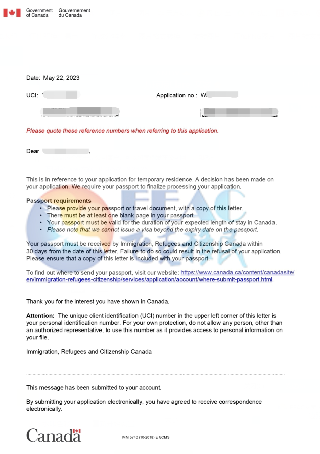 5月22日:恭喜Mr.?S?加拿大BC雇主擔保技術移民項目配偶工簽一個月獲批!