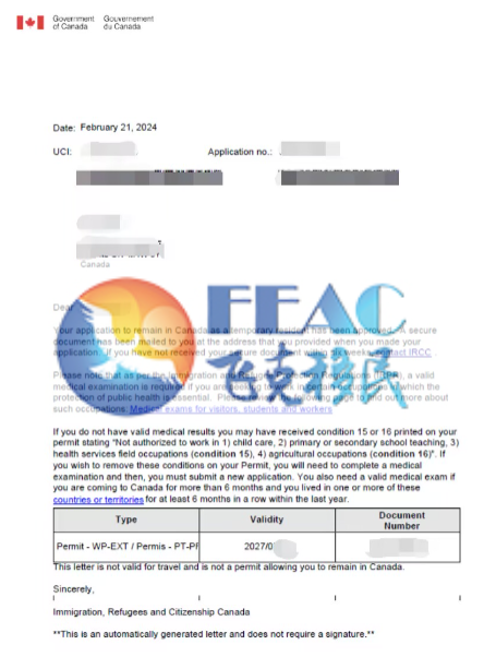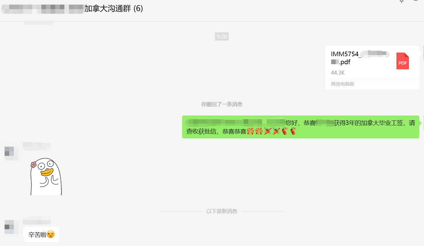 申請過程中,文案指導客戶準備相應材料,客戶積極配合,于2024.01.23遞交,2024.02.21順利獲得3年加拿大畢業工簽。