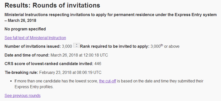 加拿大時間2018年3月26日,聯(lián)邦移民局CIC發(fā)布了Express Entry 2018年度第 6 輪(總第 86 輪)數(shù)據(jù)。