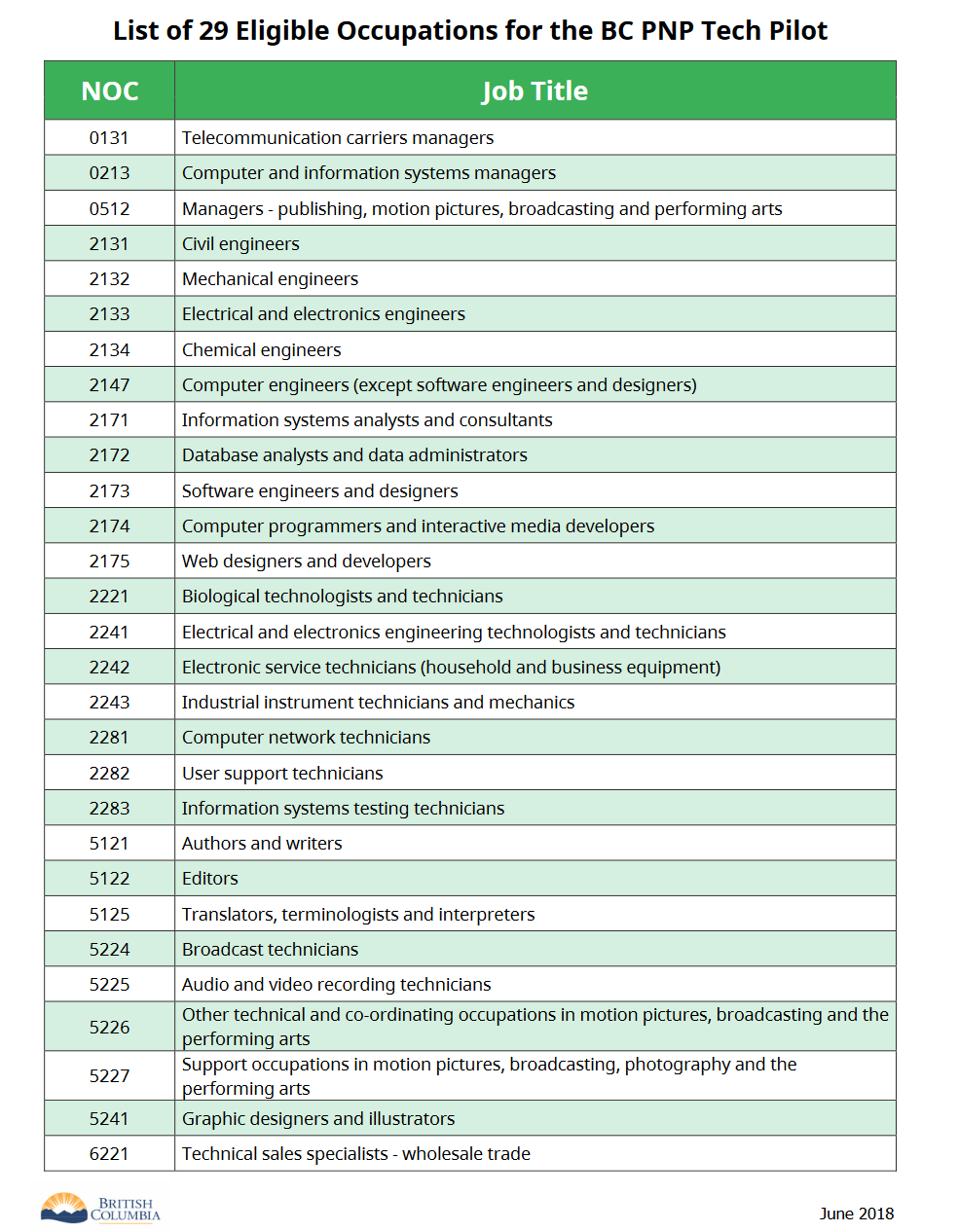 4.職業清單穩定:自BC省科技試點推出至今只有過一次變化,從原先的32個刪減到了29個。