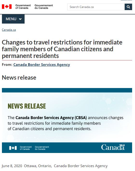 好消息!邊境限制有所放松了!6月9日上午,加拿大總理特魯多在新聞發(fā)布會(huì)上說(shuō):“我們實(shí)行了一項(xiàng)有限的豁免規(guī)定,允許公民或永久居民的直系親屬來(lái)加拿大?!?br/>