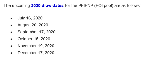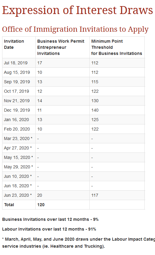 加拿大王子島企業家移民廳在6月23日發出自3月份以來的第一次抽簽,2020年3月至5月的4輪抽簽已經全部被改期或延后。這次分數線為117分,總共有20名候選人被篩選出來。