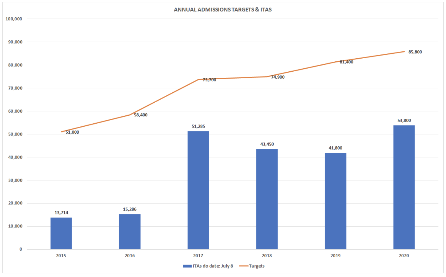 2015-2020年同期抽選人數和當年人數總目標