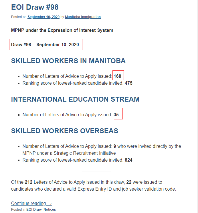 曼尼托巴省在9月10日按時舉行了第98次省提名PNP抽簽,本期曼省技術工人類別共計邀請168位申請人,邀請分數為475分,跟上期持平,仍然低于500分。