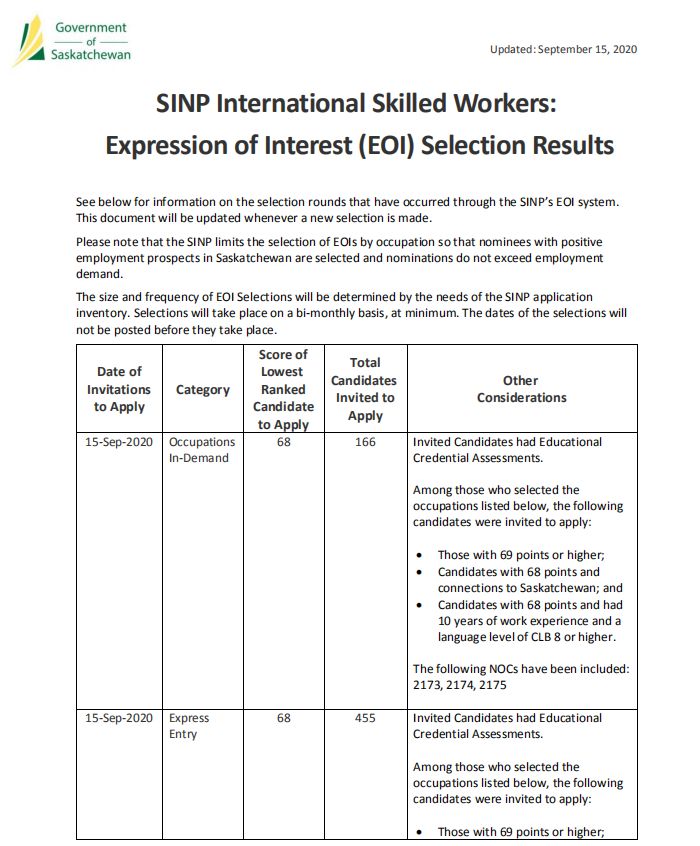 加拿大當地時間2020年9月15日,薩省技術移民無雇主類別又進行了新一輪的邀請,來看看此次邀請的最新內容吧!
