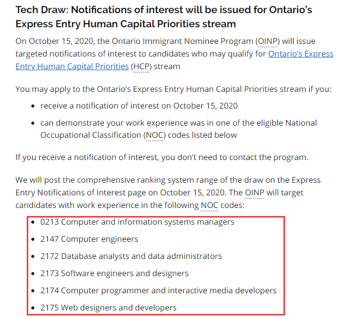 繼聯邦EE10月14日的篩選后, 安省的省提名項目也在沉寂了近兩個月后發力啟動了。本次篩選的類別是針對科技崗位的TECH DRAW, 屬安省9類省提名項目之一。