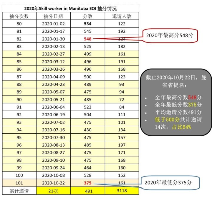 可以明顯感受到受疫情影響,2020年的曼省省提名邀請呈現(xiàn)出明顯的低分現(xiàn)象。對廣大申請人來說未嘗不是一件好事。