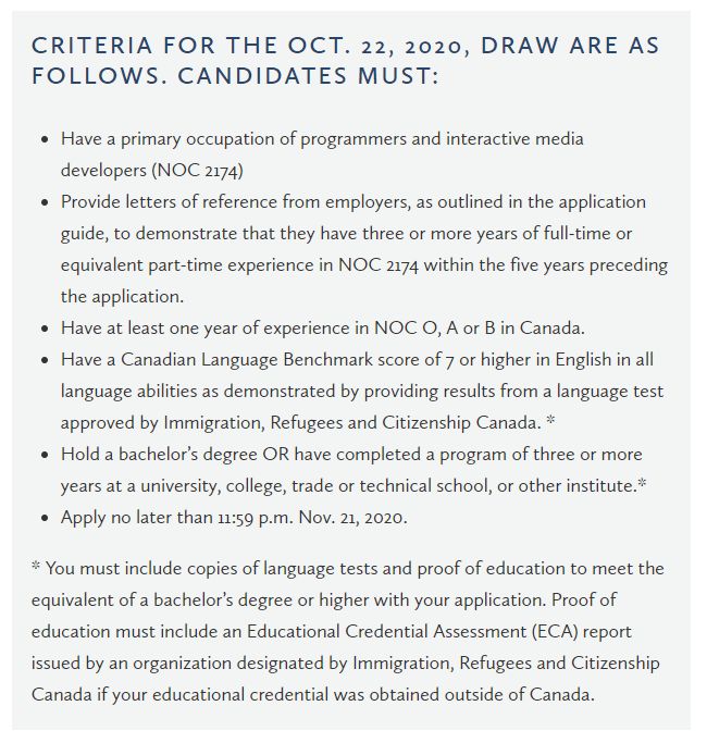 本次省提名邀請主要是針對職位為NOC2174計算機程序員和互動媒體開發(fā)的候選人。
