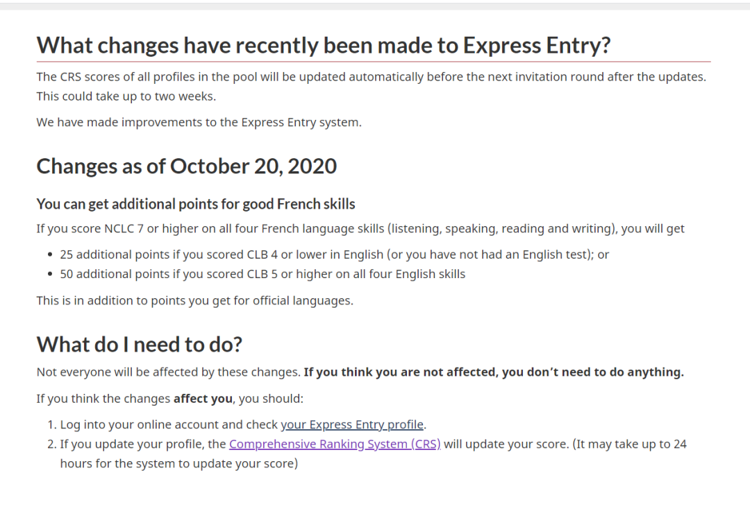 這是您在獲得官方語(yǔ)言時(shí)獲得的額外積分。如果您符合加分條件,請(qǐng)登錄并更新您的EE檔案,CRS積分會(huì)在24小時(shí)內(nèi)自動(dòng)更新。