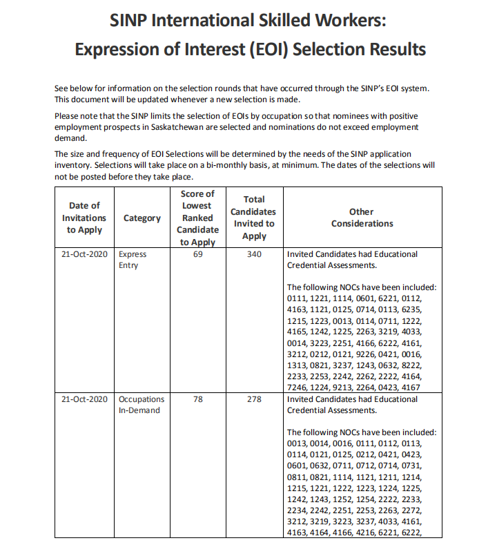 薩省10月份兩輪EOI邀請(qǐng)的結(jié)果