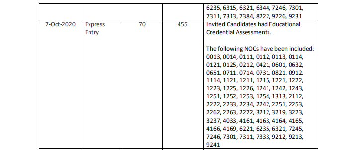 10月7日僅針對(duì)EE類別發(fā)出邀請(qǐng),本輪共發(fā)出455份邀請(qǐng),最低分?jǐn)?shù)70分;