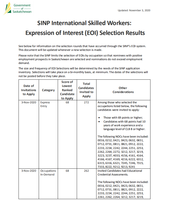 加拿大當(dāng)?shù)貢r(shí)間2020年11月3日,薩省技術(shù)移民無(wú)雇主類(lèi)別發(fā)出了本月首輪邀請(qǐng)。