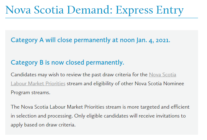 新省移民局近日發(fā)布最新消息,新省EE無雇主擔(dān)保省提名快速通道項目(Nova Scotia Demand: Express Entry)宣布永久關(guān)閉。