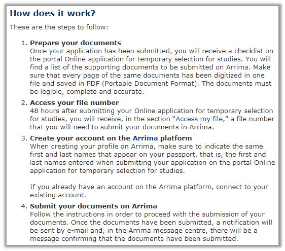 早在2020年春季開始,魁省國際留學生遞交學簽申請材料(CAQ申請)就可以使用Arrima平臺在線上傳申請材料,但當時并非唯一方式,學生仍可以選擇遞交紙質申請材料。
