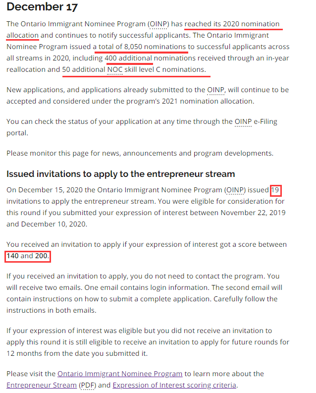 加拿大當(dāng)?shù)貢r(shí)間2020年12月17日,安省移民局發(fā)布最新公告:2020年安省省提名計(jì)劃(OINP)分配名額已滿。