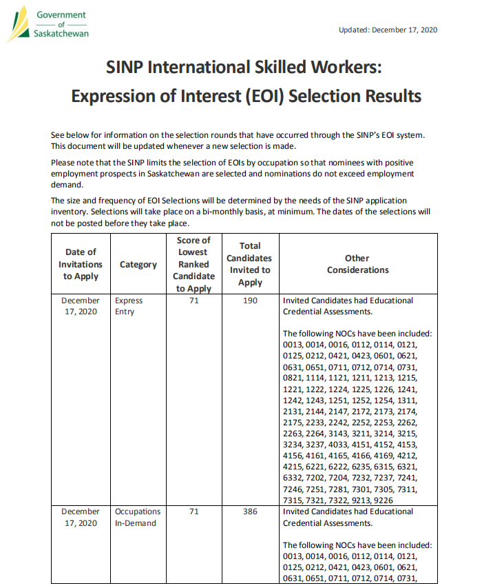 加拿大當(dāng)?shù)貢r(shí)間2020年12月17日,薩省技術(shù)移民無雇主類別發(fā)出了最新一輪邀請(qǐng)。