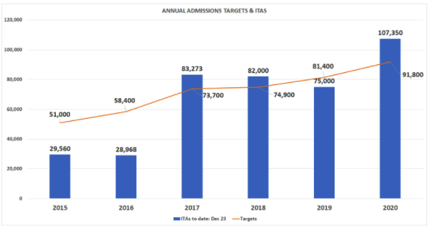 本年度發(fā)放的邀請函總數達到了107350個,遠超過本年度目標91,800人。創(chuàng)下了歷年同期抽選的新紀錄。