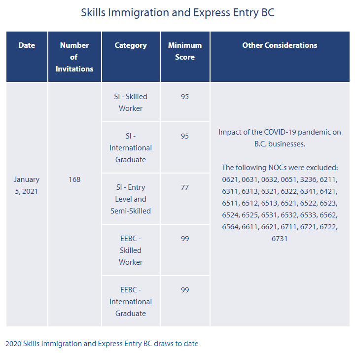 加拿大當地時間2020年1月5日,BC PNP發出了2021年本年度首輪常規邀請,本輪邀請人數降至168人,較上輪減少62人,分數和上輪一樣,保持不變。