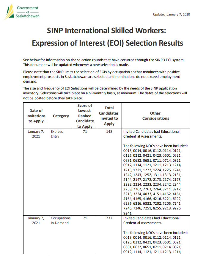 加拿大當地時間2021年1月7日,薩省技術移民無雇主類別發出了本年度的第一輪邀請。