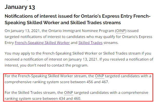 加拿大當地時間2021年1月13日,安省省政府OINP同時發出2個移民類別邀請,分別是法語類別 French-Speaking和技工類別 Skilled Trades。