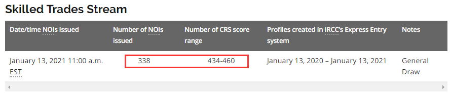 2. 技工移民邀請分數區間:434分-460分;邀請人數338人;