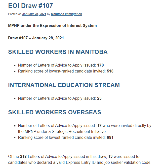 曼省畢業(yè)生類別--快速通道(即符合緊缺、專業(yè)相關、CLB7這三個條件,可以達到“畢業(yè)即提名”標準的申請人)沒有評分要求和限制,本次邀請人數(shù)23人,人數(shù)較上輪減少6人。