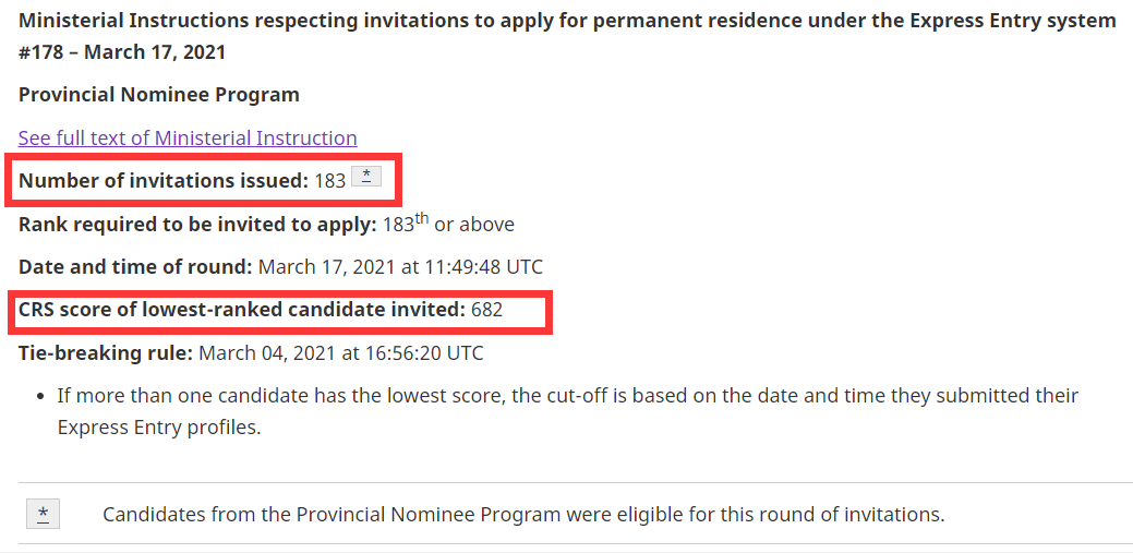 加拿大當地時間3月17日,聯邦EE發布了新一輪邀請,本輪邀請僅針對指定類別(省提名類別)。