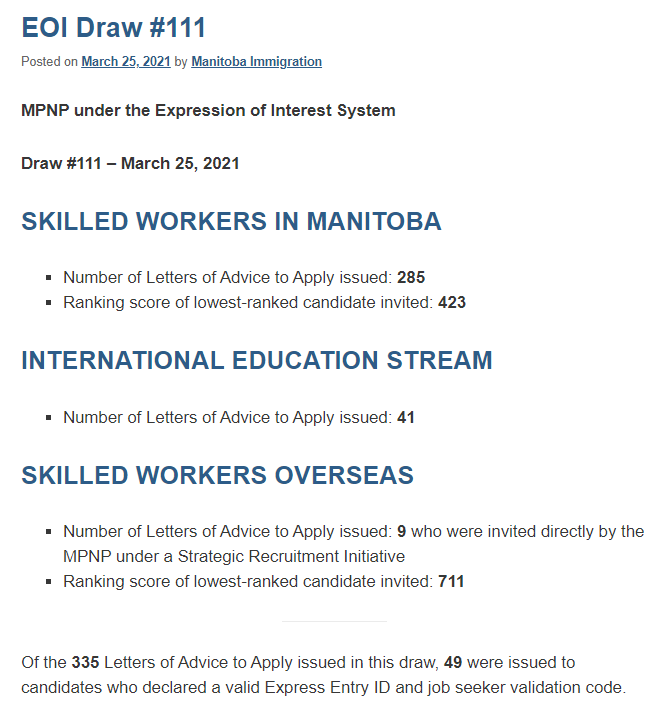 曼省畢業(yè)生類別--快速通道(即符合緊缺、專業(yè)相關、CLB7這三個條件,可以達到“畢業(yè)即提名”標準的申請人)沒有評分要求和限制,本次邀請人數(shù)41人。相比上輪邀請人數(shù)增加6人。