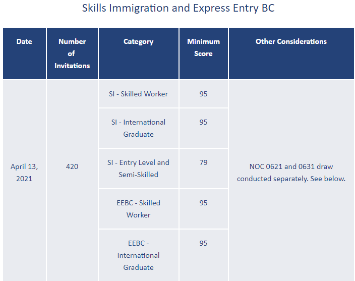 加拿大當?shù)貢r間2021年4月13日,BC PNP發(fā)出了新一輪邀請。