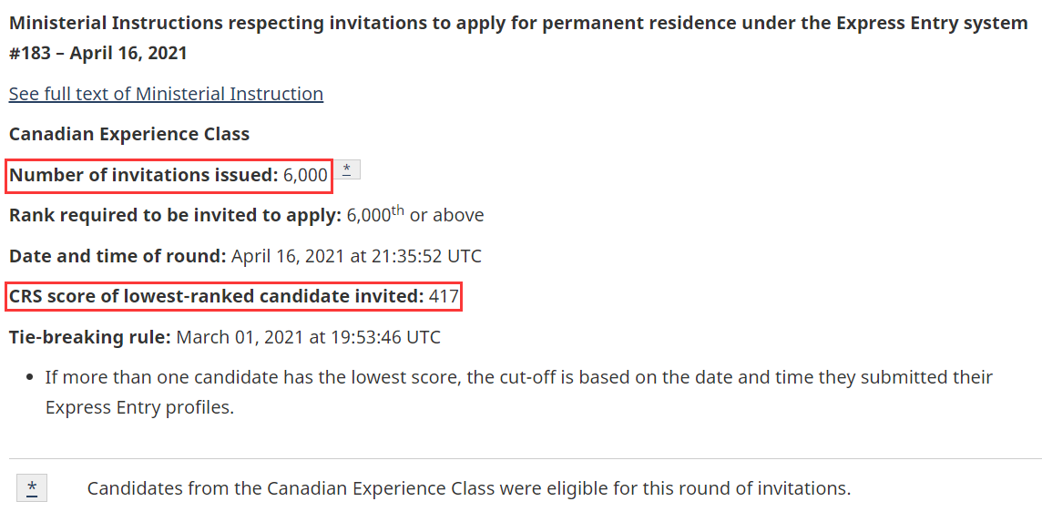 加拿大當地時間4月16日,聯邦EE發布了第183輪邀請,本輪邀請僅針對指定類別(CEC類申請人)。